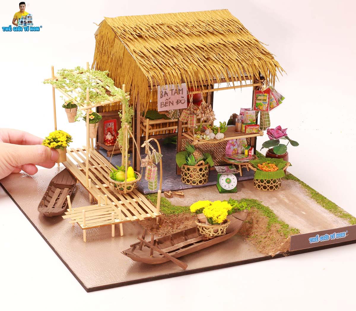 Mô Hình Miền Tây Sông Nước Bằng Gỗ Tự Lắp Ráp DIY - Thế Giới Tí Hon - Bà Tám Bến Đò - MT04